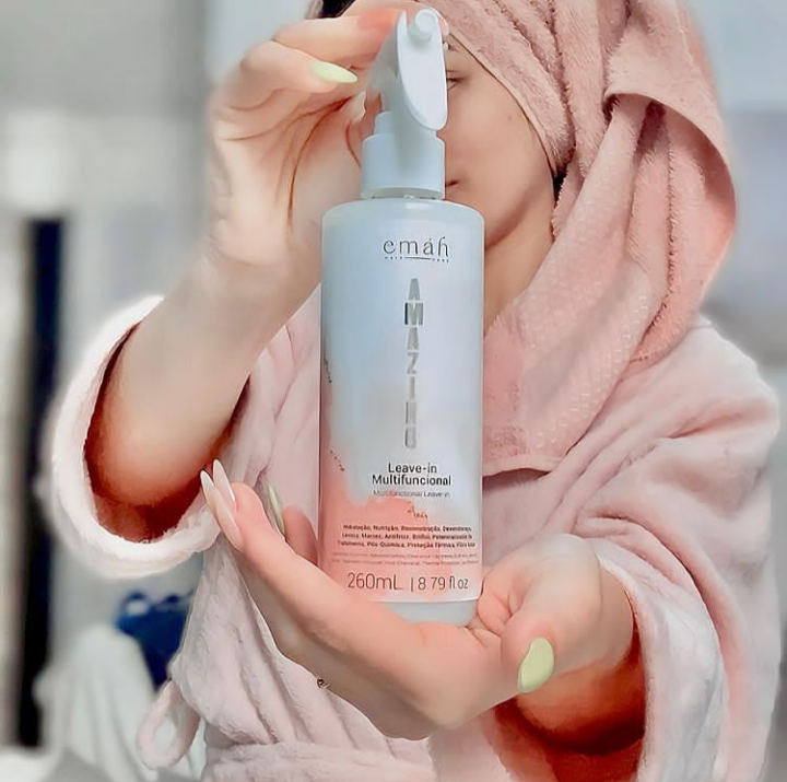 Leave-in multifuncional com hidratação, nutrição, reconstrução, desenbaraço, leveza, maciez, antifrizz, brilho, potencializador de tratamento, pós-química, proteção térmica, filtro solar.